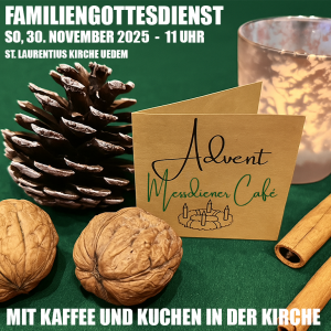 Auch in diesem Jahr findet in unserer Gemeinde wieder ein lebendiger Adventskalender statt. Folgende Gastgeber und Gastgeberinnen freuen sich auf die Besucher: 01.12.2025 18.00 Uhr Grundschule Uedem 02.12.2025 18.00 Uhr Pfarreiteam, Pfarrheim Uedem 03.12.2025 18.00 Uhr Kindergarten St. Jodokus, Rosenstr. 6 04.12.2025 18.00 Uhr KG Queekenspiere Elferratsfrauen, Fam. Franken, Klever Str, 11 05.12.2025 18.00 Uhr